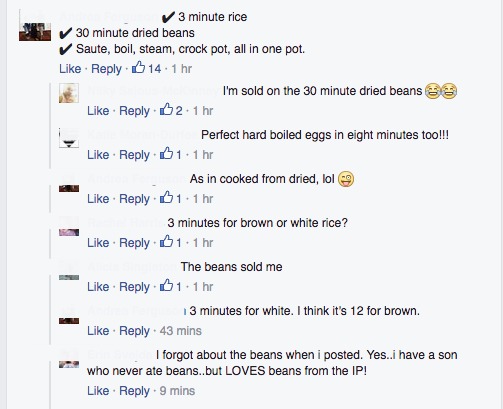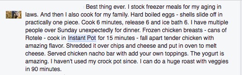 Here are some screen shots of what others who have an Instant Pot say about it: