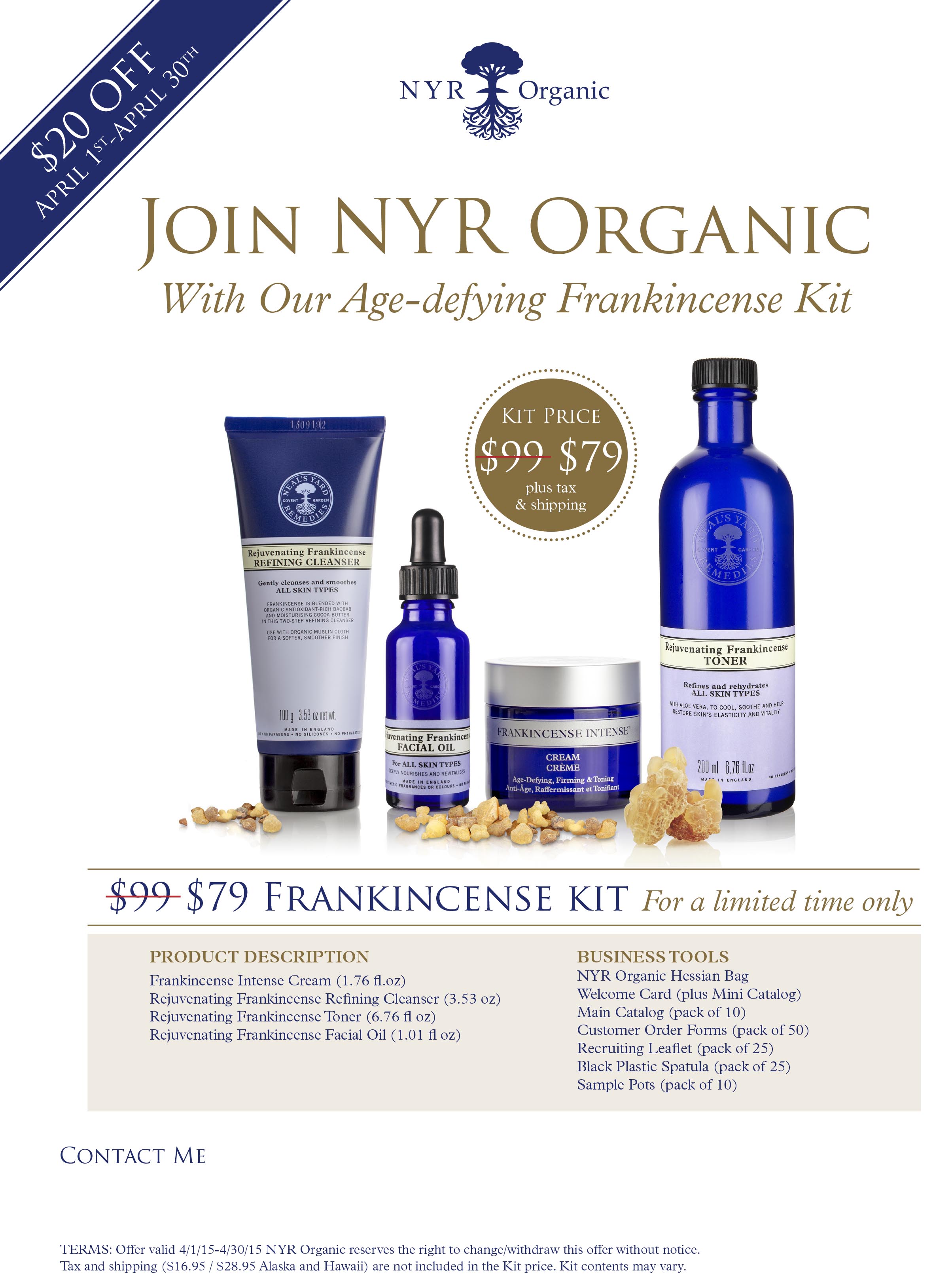 One year ago this week, I sent off for my NYR Organic starter kit. They had an amazing special last April--a special, luxurious collection of Frankincense skin care products for only 79 plus tax. I knew I wanted to cleanse with essential oils, and these products made it simple!