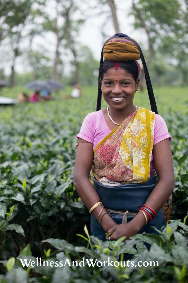 Sumoti Gorh, 29, originally from Halmari, picks tea at the Maud Tea Estate in Assam. “With all the material and financial support provided to our community of workers through Fair Trade premiums, we feel a sense of ownership through our work,” Sumoti says. “This organic tea comes from a wonderful environment. We live a healthy lifestyle here--seeing green all day is good for our eyes. I hope that those that drink our tea can feel the value of such tea and continue to support our work and the environment!”