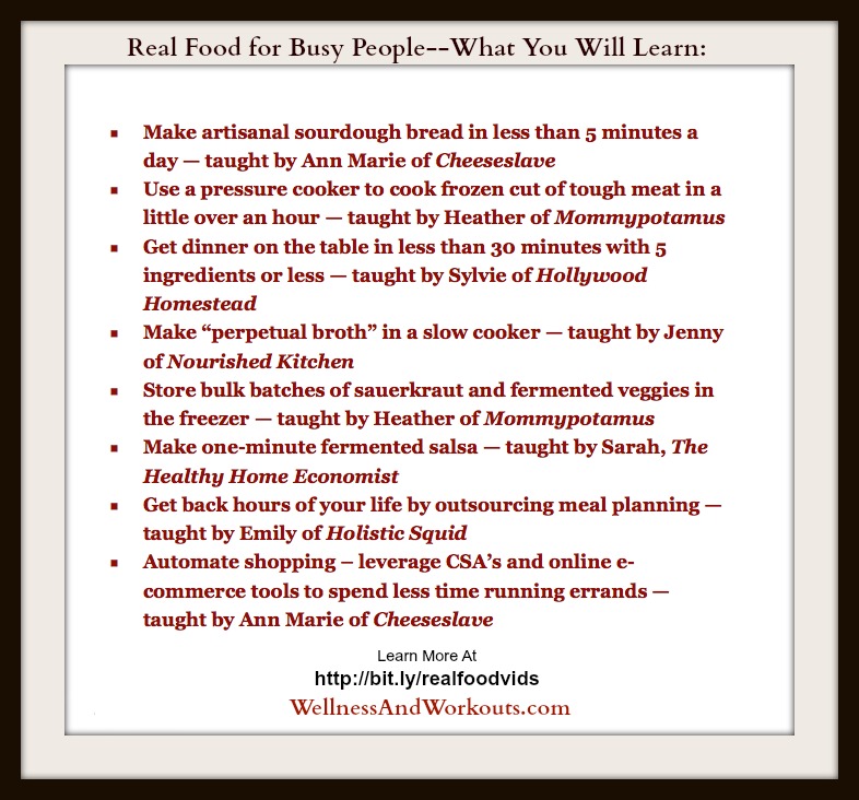 This week only, you can save 50% on Real Food For Busy People for just $99. The will go up to $199 when the introductory discount ends on August 15th.